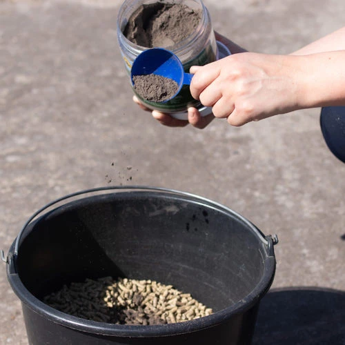 Falls Sie diese Ergänzung in Kombination mit einem Medikament an Ihr Tier verabreichen möchten, fragen Sie bitte vorher Ihren Tierarzt um Rat. Das Ergänzungsmittel kann sowohl als Kur als auch über einen längeren Zeitraum verabreicht werden. Sie können es je nach Bedarf verfüttern. Aber für eine optimale Wirkung sollte eine Dosierung von mim. 10 bis max. 30 g pro 100 kg Körpergewicht eingehalten werden.