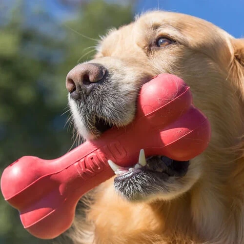 Der Goodie Bone von KONG ist ein füllbares knochenförmiges Hundespielzeug, das den Kautrieb Ihres Hundes anregt.