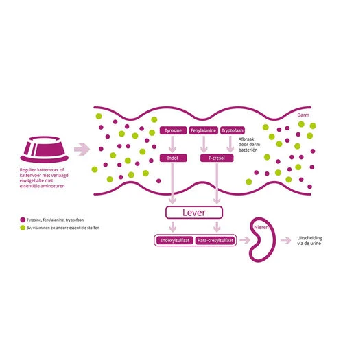 Unterstützen Sie die Nieren Ihrer Katze mit dem Porus One. Die Nieren müssen täglich Giftstoffe verwerten. Diese urämischen Toxine (Nierentoxine) sind natürliche Abfallprodukte von Proteinen und essentiellen Aminosäuren. Die Vorstufen der Nierentoxine, die von den Darmbakterien freigesetzt werden, gelangen in die Leber. In der Leber werden diese Toxine in Uremineschie-Toxine umgewandelt. Die Niere muss diese Toxine dann entgiften. In einigen Fällen sammelt der Körper urämische Toxine im Körper an, die die Nieren und andere Organe schädigen können. Porus One bindet im Frühstadium urämische Toxine im Darm, so dass sie mit dem Stuhl ausgeschieden werden. Dadurch wird die Bildung neuer urämischer Toxine verhindert.