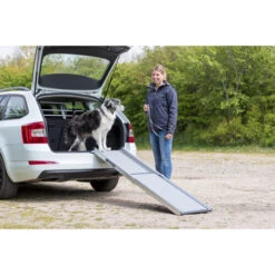 Diese Teleskop-Rampe von Trixie ist robust und für große Hunde geeignet.